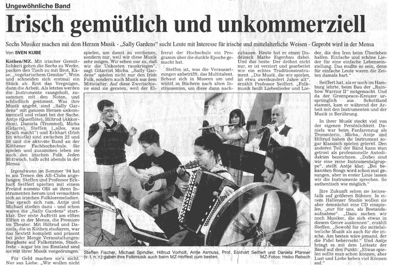 Im Sommer ’95 im AB-Club in Köthen inklusive Lampenfieber und Frei-Guinness für uns. Etwas schräg klingt es schon noch (»spielen wir alle die Wiederholung oder nur Eckhart?«). Von jetzt an kennt man uns schon an der Hochschule.